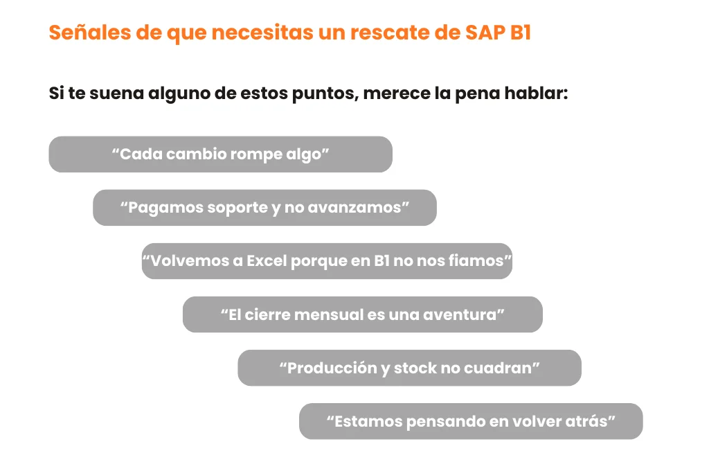 - Estabilización del core: Que compras, almacén, producción, ventas y finanzas funcionen sin sorpresas.